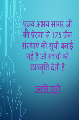 पूज्य अभय सागर जी की प्रेरणा से 175 जैन संस्थाएं की सूची जो बच्चो को छात्रवृत्ति देती है
